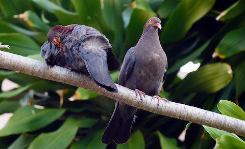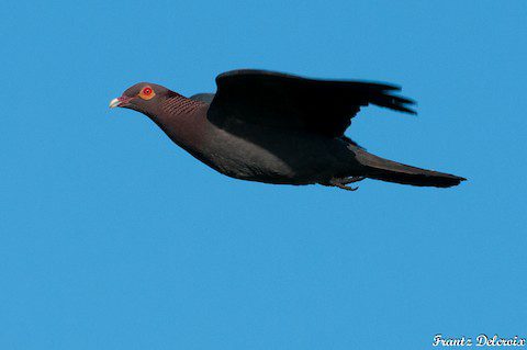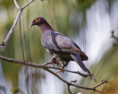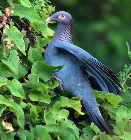 Visually similar to other pigeons and doves, the Scaly-Naped Pigeon can be identified by its distinctively scaly neck and their red eyes.