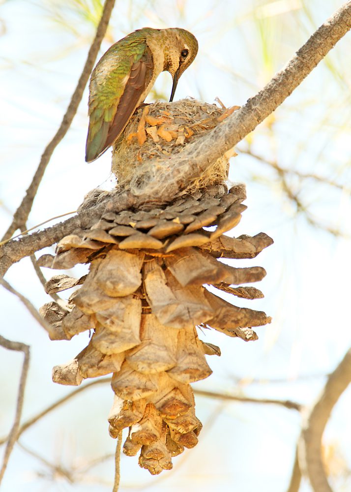 ¿Y si vives en un área donde no hay arbustos o árboles frondosos? Como verás en la galería de fotos más abajo, las aves son increíblemente creativas al elegir sus sitios para anidar. Además, no todas las aves prefieren construir sus nidos en árboles o arbustos. Por ejemplo, las Golondrinas Risqueras construyen sus nidos en hoyos debajo de los puentes, aleros de ventanas en altura o techos de edificios, y por su puesto en salientes o cavidades de precipicios. Las aves más grandes, como el Halcón Peregrino, puede que incluso construyan sus nidos en cornisas de rascacielos o iglesias, mientras que las aves mas apegadas al suelo, como el Pinzón Mexicano, puede que construyan sus nidos en macetas colgantes o faroles de luz pública que se adaptan más a sus necesidades. Si piensas en todos los escondrijos seguros que se pueden hallar en la selva de cemento, te darás cuenta de que incluso en los lugares más urbanizados existen gran cantidad de lugares perfectos para que los pájaros aniden pese a que no abunden árboles altos.