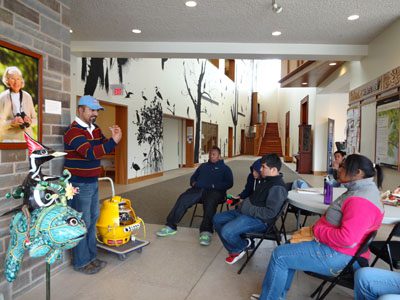 Students participated in a wide array of activities throughout the workshop including an in-depth tour of Macaulay Library with Martha Fischer, Greg Budney, Matt Medler, and Brad Walker. Youth learned about video editing and sound archiving, and got to record their own sounds and listen to audio in “surround sound.” Participants also loved hearing about the Elephant Listening Project from Peter Wrege and playing a fun bird game with Emma Greig.