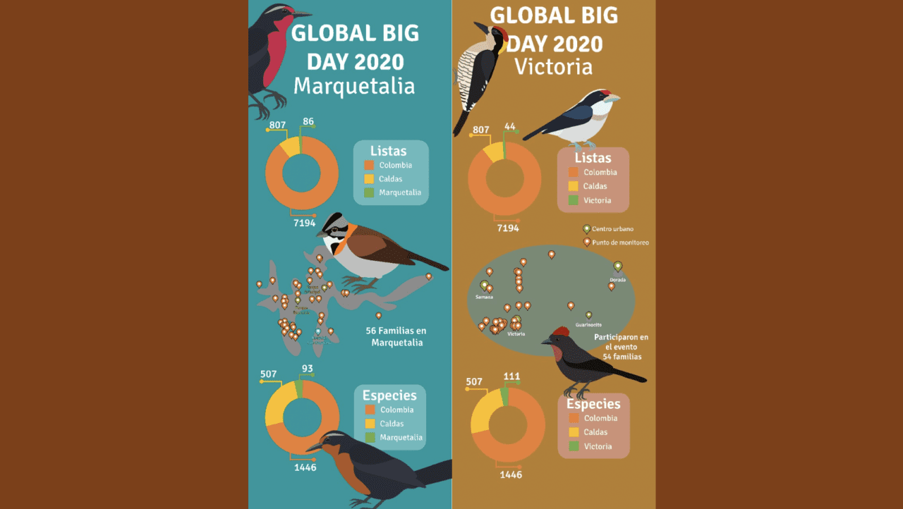 It seemed that during the COVID-19 pandemic the region was filled with the constant singing of the striped cuckoo, also know as “Tres Pies.” The deaths registered by the Colombian Department of Health were a real concern to everyone. Many people mistakenly related this tragedy with the song of the Tres Pies. During the pandemic, people were forced to stay or work at home in order to protect each other from getting sick. This caused a lot of unexpected problems such as anxiety, stress, depression, and domestic violence. The COLMENAR Research Group from Normal Superior Nuestra Señora de la Candelaria educational Institute and the Cañaveral educational Institute’s Birdwatching Club got down to business to create fun and educational programs to bring some light into people lives during these hard times. Local teachers and collaborators implemented a strategy to motivate the Victoria and Marquetalia communities to participate as a family in Global Big Day 2020 from the safety of their homes.