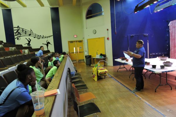 After the presentation, the kids had the opportunity to do some hands-on activities that were set up into three stations! In the first station, activity leader Luis Feliciano helped the kids plant sunflower seeds and he encouraged them to green their neighborhood!