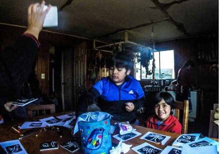 With an alliance between the La Nada Museum and the Corporación Newen (Newen Corporation), the first environmental activity was created in the Mawidache Community! Professor and artist Andrea Avendaño, director of the La Nada Museum, used the binoculars to check with the children of the community some patterns that could be seen in the flight of birds. With the concept of pattern in nature, the children had a chance to talk about the bird habitat in Mawidache and the possible flight patterns birds have in place.