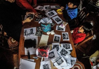 Participants also had the chance to work on art projects! Through the walk in their territory, the children had the chance to teach their local knowledge to their teacher. For this activity, the participants really observed the concept of “flight pattern” of certain birds, the shapes that birds create when they fly, and the individual dance of each bird dance. The students realized that birds were themselves art and followed repetition patterns that are made in the artistic technique of engraving. The participants talked about the relationship between art and nature in groups. Then, they drew what they saw, and without written words, they saw that art could be used to communicate. This is the main objective of the La Nada Museum!