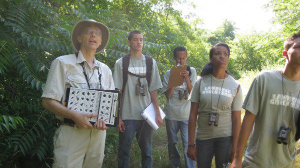 Ben continued, “The most diverse, and what I think was the most fun aspect of our Celebrate Urban Birds project were the educational components. We held a number of different events throughout Lawrence from urban birding hikes among the abandoned mill buildings and presentations at the public library, to a number of events with kids in classrooms, clubs, and camps. In July the 11-13 year olds at our YMCA Urban Adventures summer camp spent an entire week celebrating the urban birds of Lawrence. They learned how to use binoculars, how to identify birds, and even collected real scientific data on populations of urban birds at Manchester Street Park.”
