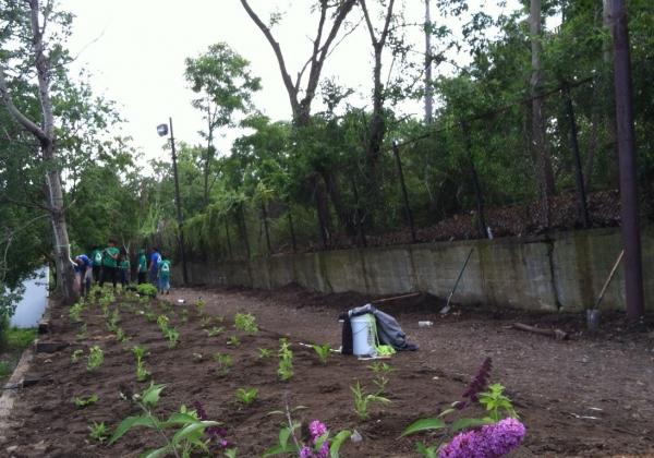 Through all the activities, they removed aggressively invasive vegetation (non-native or noxious plant species such as tree-of-heaven, black locust and Asian bittersweet) from an area about 700 feet long and 15 feet wide and with the help of New Balance, the Groundwork Lawrence Green Team, and the Spicket River Crew, they planted it with roughly 1,800 native bird- and pollinator-friendly plant species (cone flowers, sunflowers, winterberry, and Virginia creeper), which can all provide food and habitat to local birds. Groundwork Lawrence received 1,600 native wildflower seedlings from the New England Wildflower Society, and volunteers from Pfizer Pharmaceutical planted another 200+ shrubs, trees, and wildflowers.