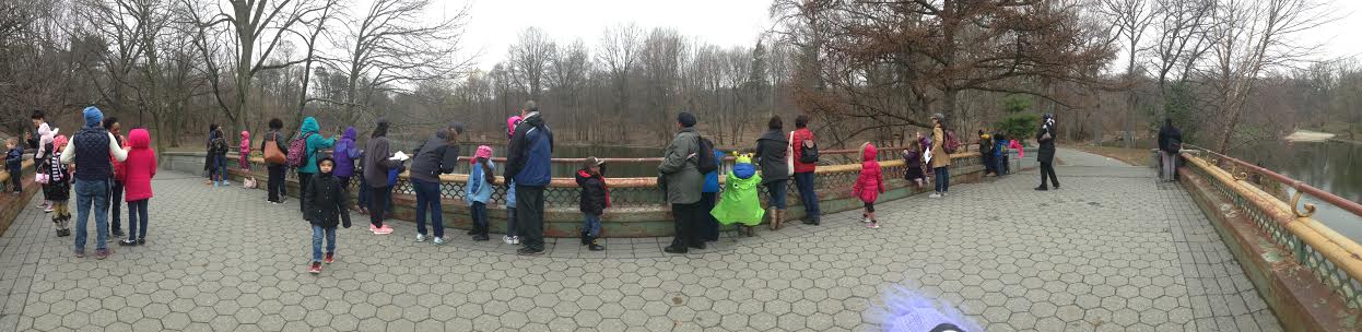 Afterwards, the fun moved outdoors. Although it was a gray and chilly day, the 50 kids who participated in the birdwatching had a blast! The viewing area was near the Prospect Park Lake. The children observed for a total of 10 minutes and afterwards tallied up the birds they saw using Celebrate Urban Birds’ super cool tally sheet! No one had birdwatched before, but that didn’t stop anyone. With a little help from the pictures on the sheet and some practice, everyone was able to have a great time identifying the birds!