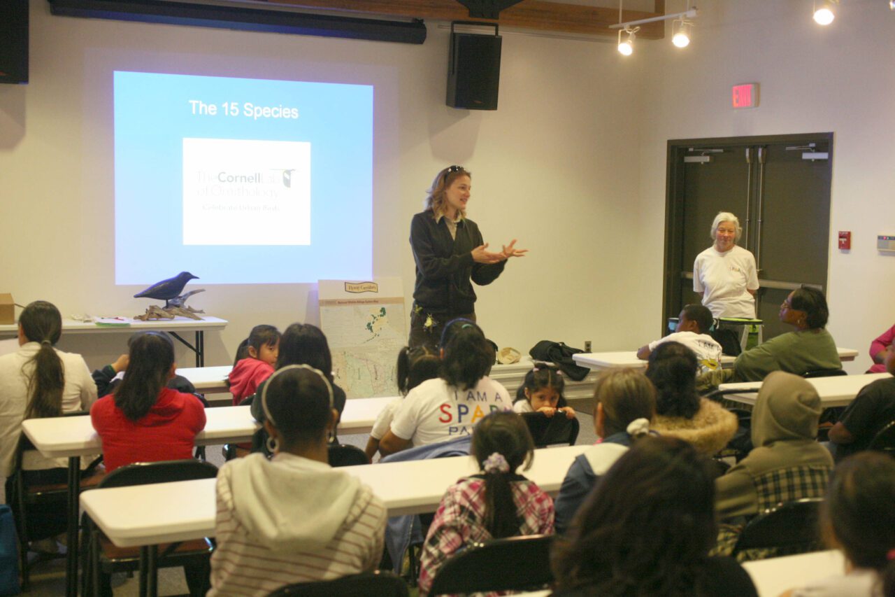 Early in March, seventeen SPARK families participated in a Family Learning/Family Fun (FLFF) day at the Eastern Shore of Virginia Wildlife Refuge. Here SPARK director Grace Cormons with her husband Matt showed families the “Celebrate Urban Birds” slideshow, and then everyone got to learn from the bird exhibits in the visitors’ center and walk the trails to observe birds in the fields and marsh with Park Ranger Jennie Lewis. Families with children 7 and older were encouraged to participate on their own in the CUBs bird observation program and record their observations.