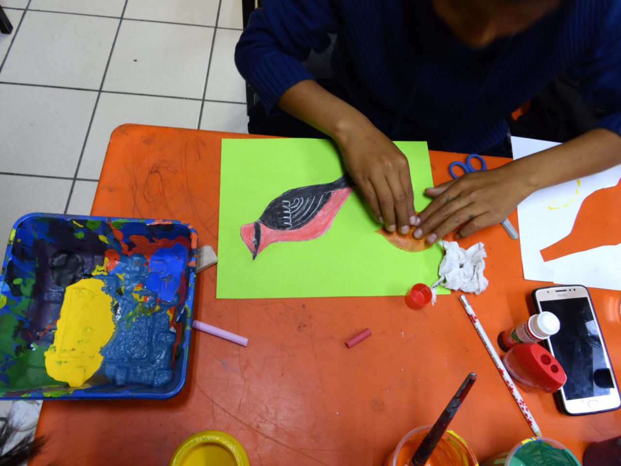 The visual arts teacher and environmental engineer Alva Daniela Escobar Juárez and workshop leader María Guadalupe Cuaxilo Muñoz led a workshop called PintAves. The workshop introduced young people to the birds that inhabit the Acuitlapilco lagoon and taught them to pay attention to the details that differentiate each species. The workshop was enriching! Students were able to identify their favorite birds in their habitat: the Acuitlapilco Lagoon.