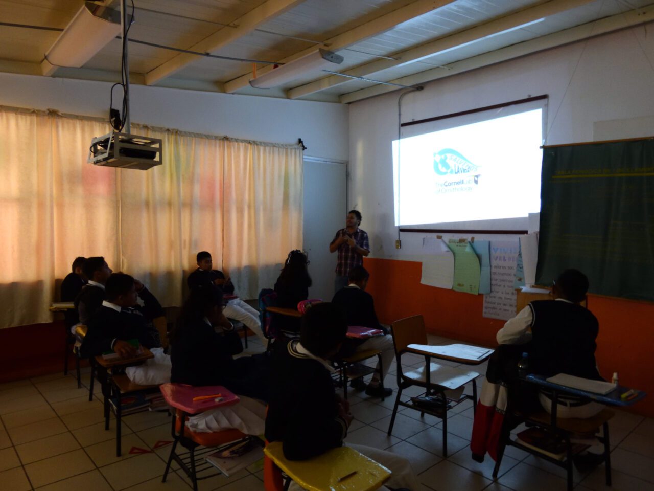 The next festival activity was a diagnostic survey to see how much the young participants knew about the birds in their community. Most of the students knew the local birds by name as well as what they ate. However, a large number of the participants were unaware of the role birds have on the local environment. Next, the students had an introductory talk where they discussed why birds were important. This was followed by a workshop discussing what birds are as well as how they evolved. The workshop spoke about the birds of Tlaxcala as well as birds across the world. It mentioned the role of birds as pollinators, seed dispersers, natural pesticides, natural cleaning agents and environmental indicators. Data was shown on how a large number of species have become extinct due to human activities. Participants then brainstormed solutions to reduce harm to the species. In addition, the importance of observing and counting the birds of the community to help with their conservation was emphasized.