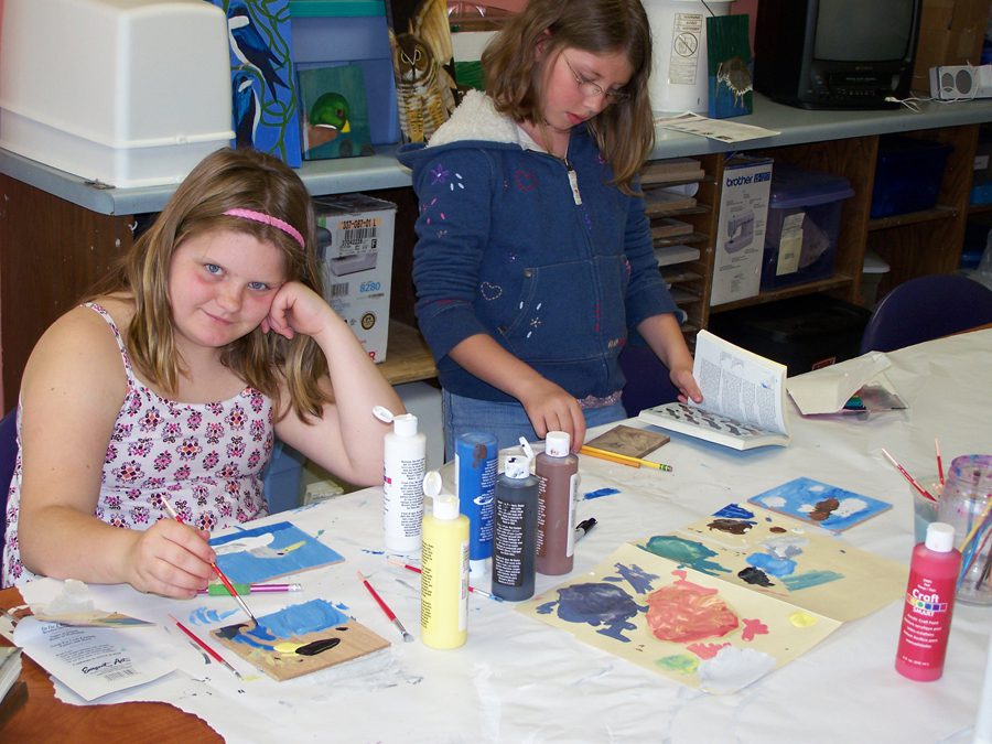 Unfortunately, the weather didn’t cooperate (it poured rain all morning, and then was very windy, cloudy and cool for the afternoon), so art activities were moved indoors.