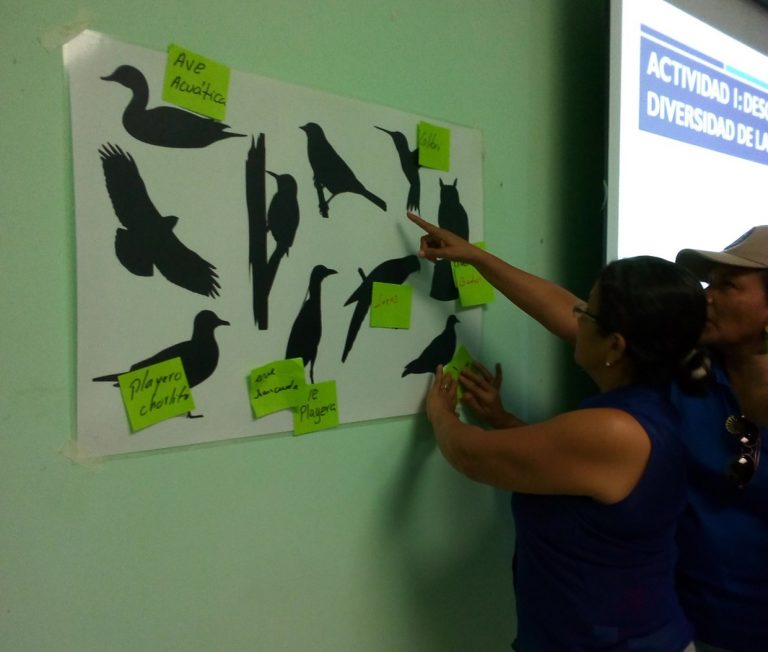 Cada taller de dos días fue intensivo. La mayoría de los participantes no tenían conocimientos previos acerca de aves, o al menos eso creían. A medida que avanzaba cada sesión se dieron cuenta de que conocían más de aves de lo que pensaban. Además, de aprender acerca de aves como indicadoras de la restauración forestal y conocimientos básicos sobre monitoreo, cada participante fue descubriendo de qué manera podían aplicar las actividades del taller con sus estudiantes o miembros de la comunidad.