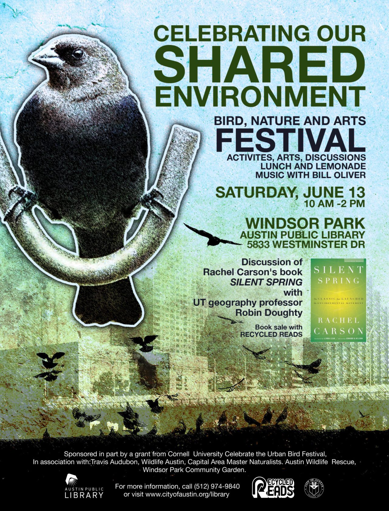 Consideramos que la mejor manera de lograr nuestro objetivo era crear un festival comunitario de arte y naturaleza con eventos y actividades, incluyendo una minicharla sobre el clásico de Rachel Carson, Primavera Silenciosa, a cargo del Dr. Robin Doughty, Geógrafo de la Universidad de Texas. El objetivo del festival iba más allá de simplemente celebrar o entretener; queríamos educar a los asistentes sobre el mundo natural que los rodea y despertar su interés por él.