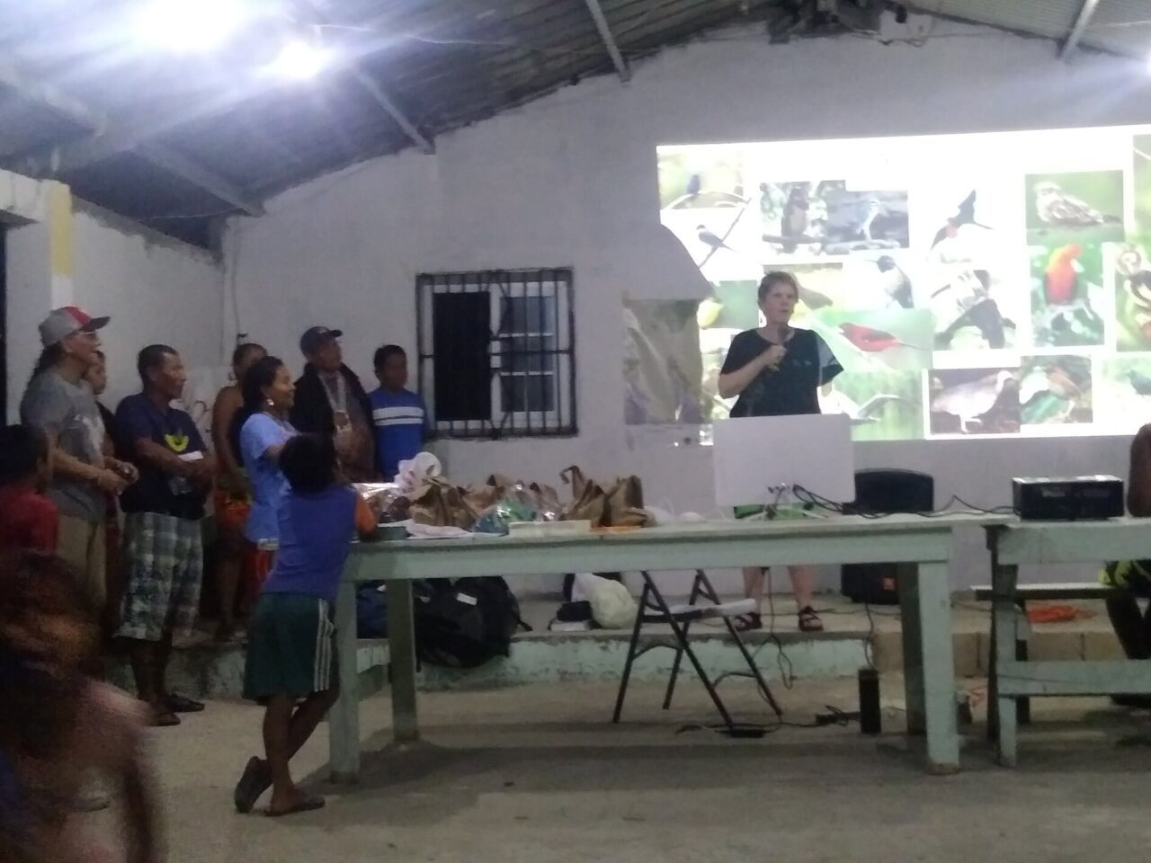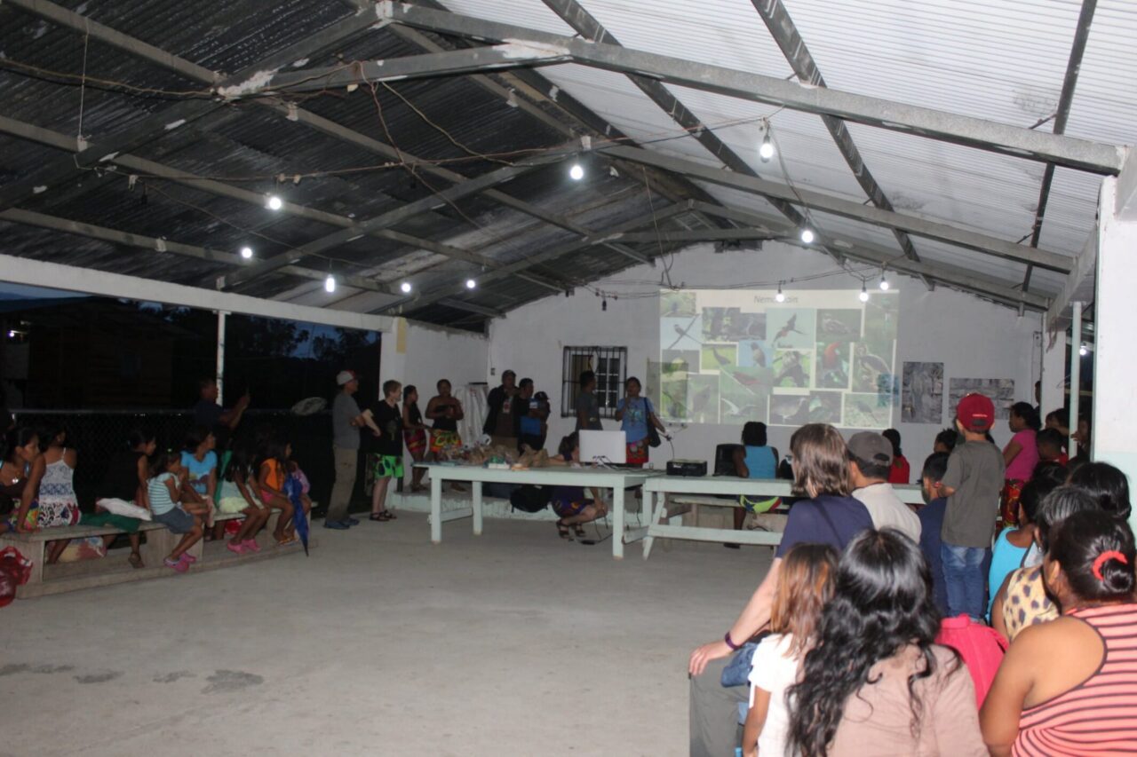 La celebración comenzó con una feria artesanal, seguida de presentaciones sobre el Conteo Mundial de Aves Migratorias, una representación de Por qué las Aves Migran y una actualización sobre la documentación de las aves en su lengua materna, Wounaan Meu. Durante el día, se realizaron competencias de dibujo, y los participantes se divirtieron dibujando sus aves favoritas. A los participantes les encantó la competencia de canciones acerca de aves. Durante la noche, se podía oír el sonido de niños imitando a las aves, como al Búho Café (Ciccaba virgata), al Carpintero Habado (Melanerpes rubricapillus), y a la Paloma Colorada (Patagioenas cayennensis). ¡La comunidad se reía, gozaba y apoyaba los intentos de los niños! Fue hermoso y emocionante.