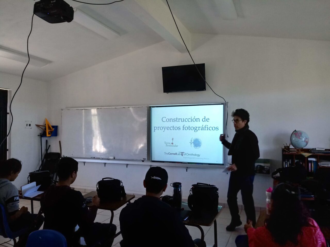 Los jóvenes del club también participaron en un taller facilitado por el famoso fotógrafo documentarista Alex Espinosa. Aprendieron acerca de fotografía digital y documental, la práctica de la fotografía, y cómo aplicar los métodos aprendidos a sus propios recursos y proyectos. Alex regresó meses después, a continuar seguimiento con el grupo y aconsejar los proyectos de los jóvenes. Joan escogió explorar la extracción de rocas en San Quintín y cómo esto está afectando la pérdida de hábitat de las aves playeras de la región.
