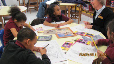 Una vez al mes, los líderes del programa (los “pajareros”), visitan las dos escuelas y salen a dar caminatas al aire libre con los estudiantes para hacer observaciones de las aves focales de nuestro proyecto de ciencia participativa de Celebra las Aves Urbanas. Durante estas caminatas, los estudiantes aprende acerca de aves y en especial acerca del “ave del mes.” Por medio del uso de los materiales educativos y de facsímiles para colorear del Laboratorio de Ornitología de la Universidad de Cornell, los estudiantes aprenden acerca de las características de las aves comunes de su vecindario, y de la importancia del hábitat para las especies de aves que viven en la ciudad. Como pueden apreciar en las fotos, a los estudiantes les encanta aprender acerca de aves en este programa de actividades después de la escuela.