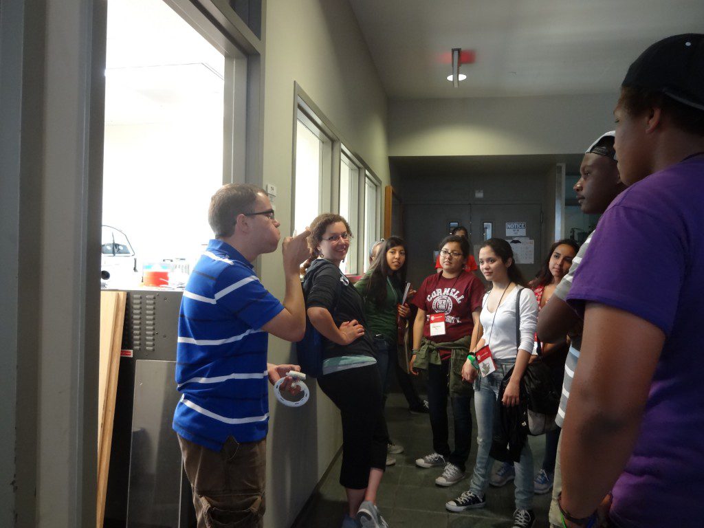 Los participantes también realizaron un recorrido por Cornell, incluyendo las facultades de Veterinaria e Ingeniería. Aprendieron sobre el proceso de admisión y las oportunidades de investigación. Natasha Wissmann (estudiante de penúltimo año de la Facultad de Ingeniería) guió el recorrido por la Facultad de Ingeniería y habló sobre su experiencia como estudiante en Cornell, los clubes, el apoyo académico, la ayuda financiera y más. Los estudiantes Maritza Medina (estudiante de penúltimo año de la Facultad de Relaciones Laborales Industriales), Braulio Castillo (estudiante de primer año de la Facultad de Artes y Ciencias) y Shailee Shah (recién graduada de CALS) hablaron sobre sus experiencias como estudiantes de pregrado en Cornell.
