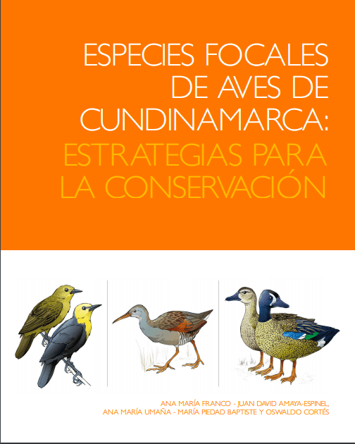 En esta publicación se encuentra información detallada acerca de las aves focales de Cundinamarca, tal como descripción taxonómica e información ecológica, incluyendo el nivel de amenaza en que se encuentra cada especie, su descripción física detallada, dieta y hábitat. Las aves focales fueron seleccionadas principalmente por ser indicadoras del estatus de los ecosistemas en que se encuentran. Además, en esta publicación se incluyen recomendaciones para la conservación de las especies descritas y sus hábitats, cómo fueron seleccionadas las especies focales, las partes del cuerpo de un ave, y un capítulo acerca de cómo observar a las aves en el campo. Esta publicación es de La Corporación Autónoma Regional de Cundinamarca (CAR), con el apoyo de la Asociación Bogotana de Ornitología (ABO) y la Red de Observadores de Aves. Se espera esta publicación apoye los esfuerzos por la conservación de los ecosistemas en la región e incentive al público en general a participar en la observación de aves y en acciones concretas por la conservación de la avifauna de la región. ¡Descarga aquí (a mano izquierda en la página de este enlace, encuentras el documento que se llama “160.pdf” para ver o descargar)!