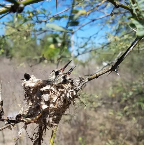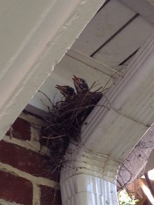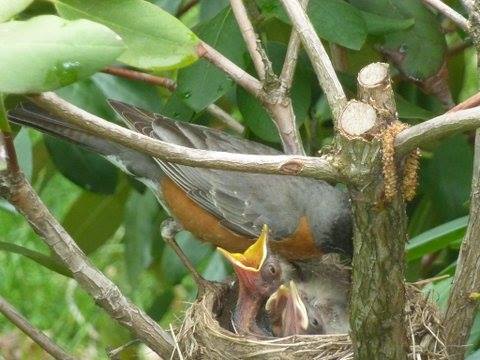 Robin Nest On Drain Spot by Lucinda Rowe (Roanoke, Virginia, USA): Third time’s the charm – after the starts of two nests fell off, this one survived. Two almost ready to fledge chicks can be seen. This nest is right off my front porch above my trash and recycling cans.Rose-breasted Grosbeaks Outside my Window by Nathan Hermann (Dubuque, Iowa, USA): One chick pleading for more while the other takes a nap. Rose-breasted Grosbeaks Outside my Window by Nathan Hermann (Dubuque, Iowa, USA): First day spotting the chick with the fuzzy white MohawkWinner: Get Well Note to Gramma written the day after we all checked the bluebird boxes and found 4 little baby bluebirds by Deb Knudsen (Brooklyn, Wisconsin, USA): Mommy, Devin (21 months), Vivi (5) and Gramma checked the bluebird boxes at Gramma’s land and discovered a mother bluebird feeding 4 nestlings inside one of the boxes. The next day Gramma wasn’t feeling well so Vivi made a Get Well Note to cheer Gramma up! It really helped. Gramma and Vivi are on the left, the baby birds are in the box (square) and the mommy bird is feeding the babies. The sun is in the top right corner and trees and grass on on the bottom.Hummingbird Nest on Coat Rack by Kathy Borshanian (Boquete, Panama): What a surprise to find this tiny Hummingbird nesting on the coatrack outside my door. Good thing I didn’t hand up my raincoat!Hummer Twinsies by Arianna T (Sonara, Mexico): Baby hummingbirds are too cute for a description!Robins In The Rabbit Hutch by Chrisalyn, Nicole, and Benjamin Mitchell (East Berlin, Pennsylvania, US): Once we housed rabbits in an outdoor hutch, but then we moved them inside. Not long ago, an American Robin nested in it. She laid three eggs. Today, one hatched. We took a picture of it and made it our entry.YOUNG GREAT HORNED OWLS by Willow-Sharon Brooks (Prescott, Arizona, US): WHO-O-O-O ARE YOU?Enjoying The Sleigh Year-round. by NH Paula (New Hampshire, US): Is the Christmas Tree Shop sign close enough to having a nest in a tree? Mama & Her Babies. by Mallory (Syracuse, New York, US)Mother’s Love by Susan Albert (Wyoming, Pennsylvania, US): Mama, Feed us please, hungry we are!Birds On Stairs At Observation Tower Of Montezuma Wildlife Refuge by Ryan Kelly (Seneca Falls, New York, US): I was climbing the stairs at the Montezuma Wildlife Refuge and saw this little guy!Baby Robin Day 1 by Meng Cai (Okemos, Meridian Charter Township, Michigan, US): Papa robin and mama robin built a home. Mama robin laid two eggs. 20 days later, comes baby robin No.1.Barn Swallow Siblings by Alison Forde (Oshawa, Ontario, Canada): Barn swallow fledglings in an artificial nesting structure installed adjacent to a growing suburb. It’s getting a bit crowded in here!Funny Dove Nest! by N P (Temple, Texas, US): doves are probably the funniest birds!Sweet baby birds by Michael Eubanks (Helotes, Texas, US): We had birds build their nest on 2 lightbulbs on our porch in the backyard. The baby birds just hatchedTrek Nest by Pip Reese (age 9) (Chattanooga, Tennessee, US): This photo was in Chattanooga , Tennessee…..my mom and I had taken a day trip there and had stopped at this cute little shopping plaza. On top of the signage of the Trek Bicycle Store was a Black Capped Chickadee’s nest. He and I made eye contact , had a chat, and then went on about our day. My chat with a Black Capped Chickadee…I was 6 at the time.